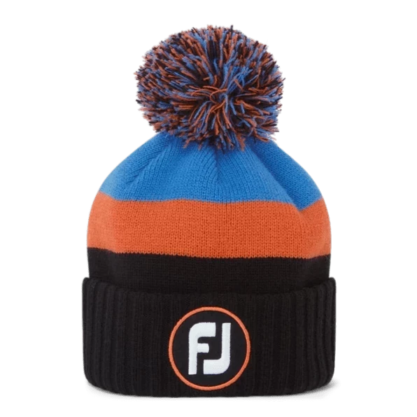 FootJoy Pom Pom Golf Beanie FH22BPOM | Black/Orange/Sapphire 084