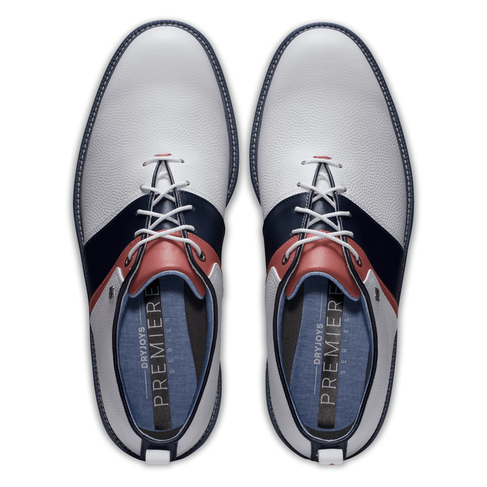 Providing both a premium feel and style, Footjoy Premiere LE Summer Classics Packard Golf Shoes offer a classic, yet well-established look to the course – encompassing the newest technologies to supply the best possible comfort. Designed as part of the Summer Classics collection these incredible shoes are made to celebrate summer & everything great about the season. The White, Navy & Red colourway looks phenomenal making these the perfect traditional summer golf shoe.