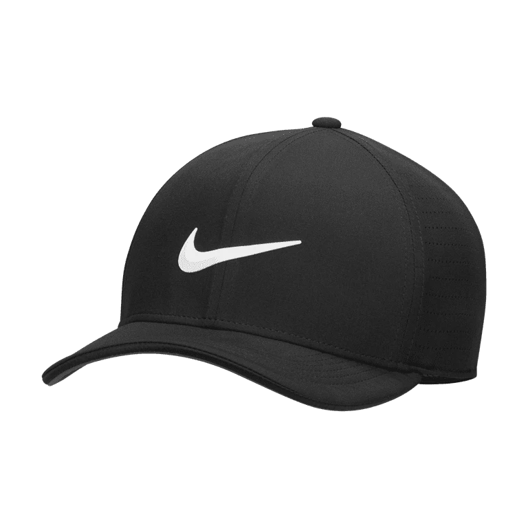 Nike’s Aerobill Classic 99 Golf Cap is made with a sweatband and Dri-FIT material for superior moisture control. Perforations on the side panels increase airflow. Contrasting Nike branding brings an authentic tour style to your look.