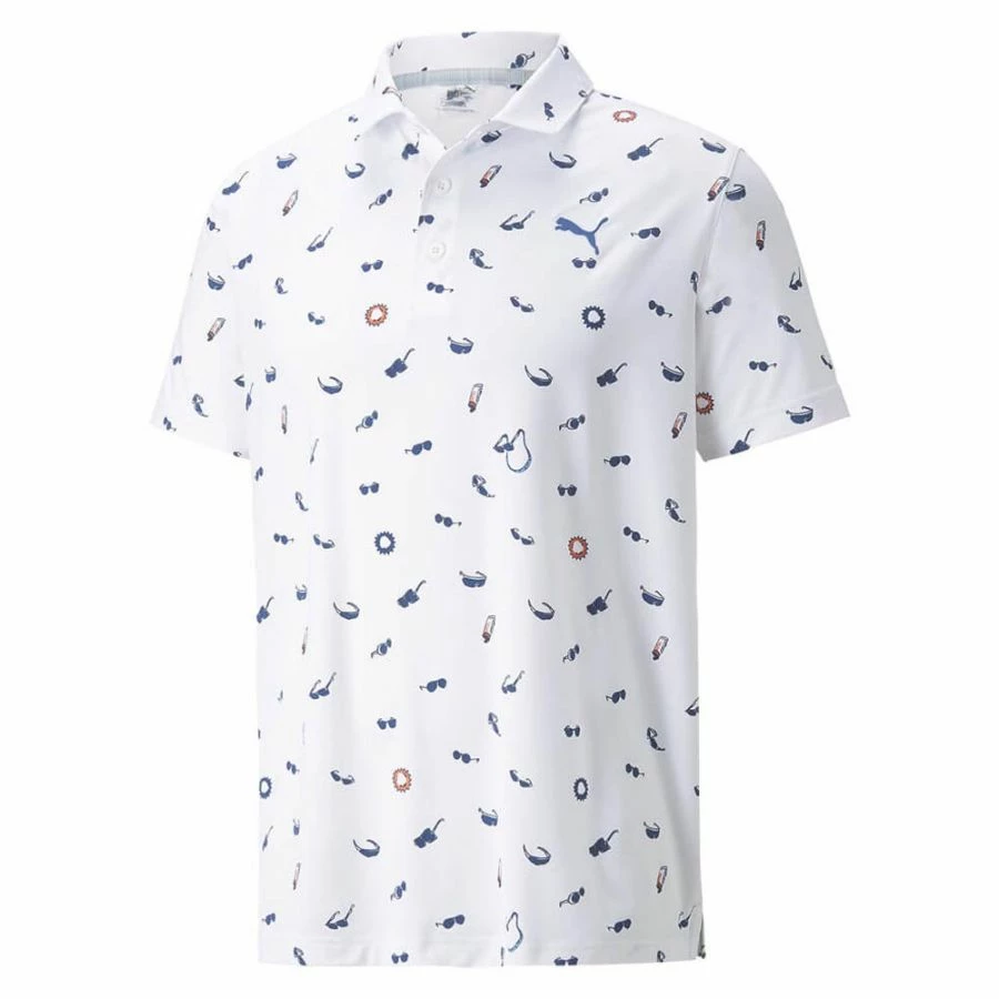 The Puma Mattr Sunnies Golf Polo Shirt is a great addition to any wardrobe and perfect for your next day on the links. This polo shirt celebrates ideal golfing weather with its playful sunglasses theme, but it’s not just about good looks: The dryCELL technology wicks moisture away from your body, keeping you dry and comfortable no matter how hot it gets.